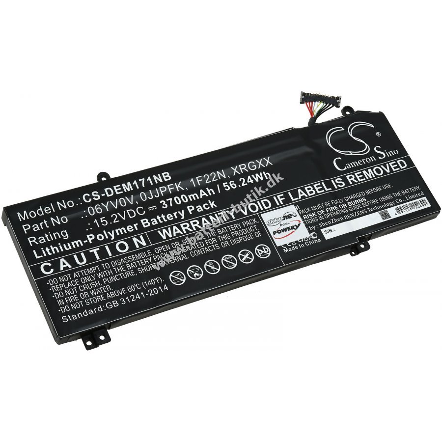 15,2V 3700mAh/56,2Wh Li-Polymer - Genopladelig Sort 221,52mm x 87,70mm x 11,54mm Powery