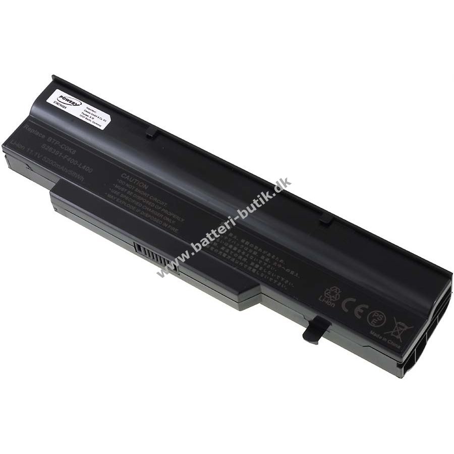 11,1V 4400mAh/48,8Wh Li-Ion - Genopladelig Sort 205mm x 49mm x 29mm Powery