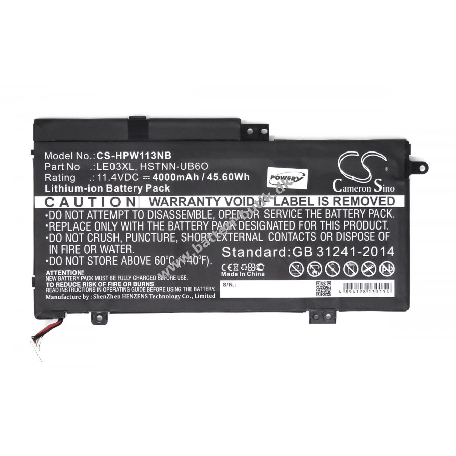 Batteri til Laptop HP Typ TPN-W113