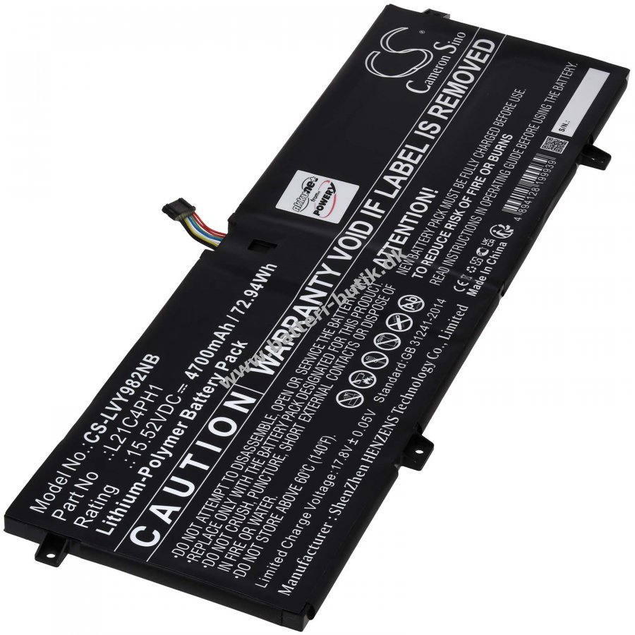 15,52V4700mAh/73WhLi-Polymer - GenopladeligSort288mm x 94mm x 6mmPoweryLagervarer leveres fra 1-4 hverdage med GLS.