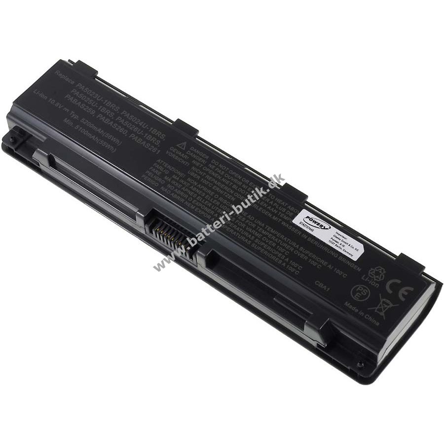 10,8V 5200mAh/56Wh Li-Ion - Genopladelig Sort 205mm x 52mm x 21mm Powery