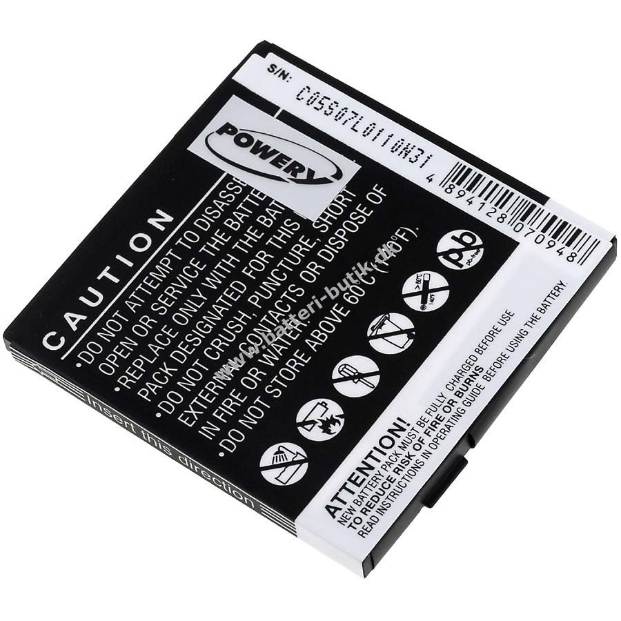 3,7V 1200mAh/4,4Wh Li-Ion - Genopladelig Sort 55,9mm x 54mm x 4,5mm Powery