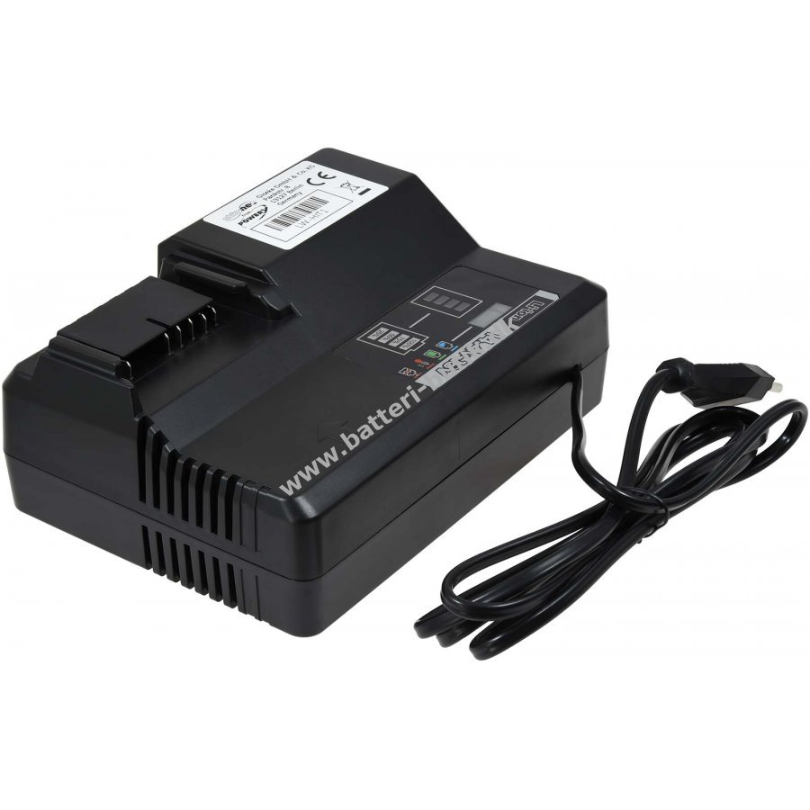 14,4V-18VSort180mm x 135mm x 75mmPoweryUniversel hurtigopladende bordoplader til Li-Ion værktøjsbatterier fra 14,4V til 18V
